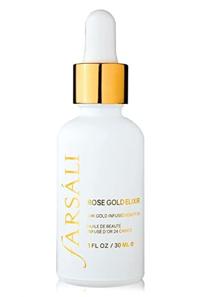 The Rose Gold Elixir is a fast absorbing, light-weight beauty oil infused with 24K Gold, Rosehip Seed Oil and pure botanicals.